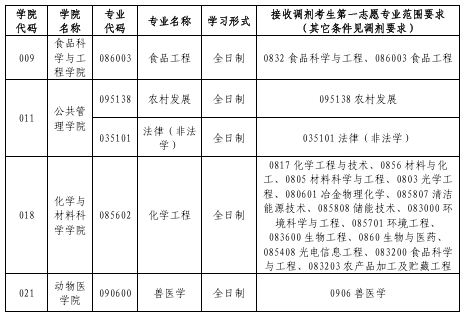拟接收调剂的专业和拟接收调剂专业对考生第一志愿专业范围等要求,详见附表。